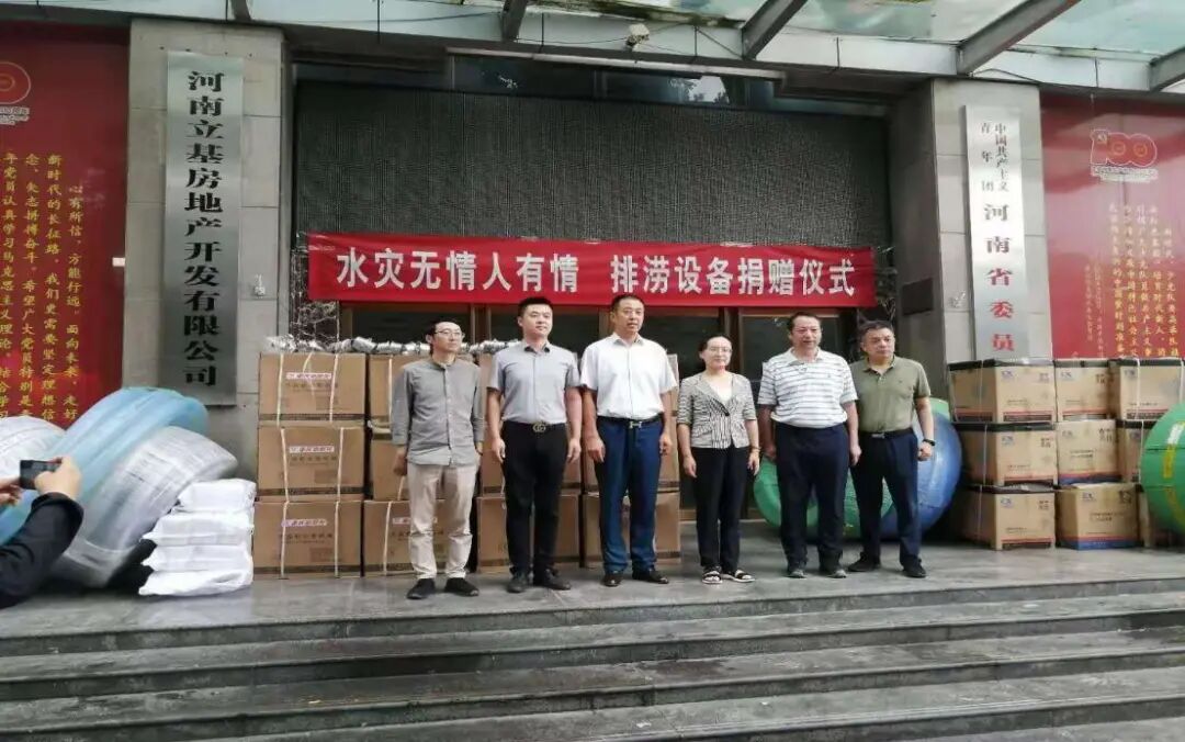 风雨同舟,共克时艰,2021年7月20日以来河南各地突遭千年一遇特大暴雨侵袭,郑州城区到处是一片汪洋,灾情特别严重,面对灾情,河南省政协委员、河南省信用建设促进会轮值会长、河南省泵阀业工程管理商会会长、河南水泵集团总裁张朝祥立即发出倡议书,倡议河南省泵阀行业和工程管理行业积极投入到防汛救灾当中究院成立防汛抗洪救灾救援队,冲锋到一线抗洪救灾。在救灾进行中,张朝祥积极响应党中央、河南省、郑州市的号召,加班加点积极筹备排水设备,在得知团省委所有人员转变身份为志愿者组建了五十多个救援队到一线抗洪救灾中,急需排水泵排水救灾,就立即筹集第一批二十台套大流量防汛抽水设备捐赠给团省委分发到各个救援队实施抽水救灾,团省委王艺书记亲自参加捐赠仪式,对捐赠的排水设备给与高度评价。